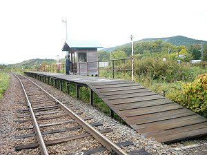 1面1線に木造の待合室のみの駅。周囲は民家数軒のみ。